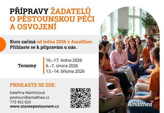 Od ledna 2026 začínáme v Amalthea z.s. přípravy budoucích pěstounů. Přípravy jsou součástí povinného vzdělávání žadatelů o náhradní rodinnou péči.